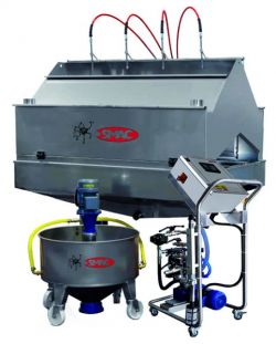 Fix airless system for the application of abrasive products, glazes, engobes, cristallines on tiles.