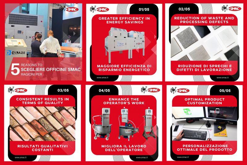 La Officine Smac S.p.A. dal 1969 è specializzata nella costruzione di automazioni, impianti ed attrezzature per industrie ceramiche e dei laterizi.